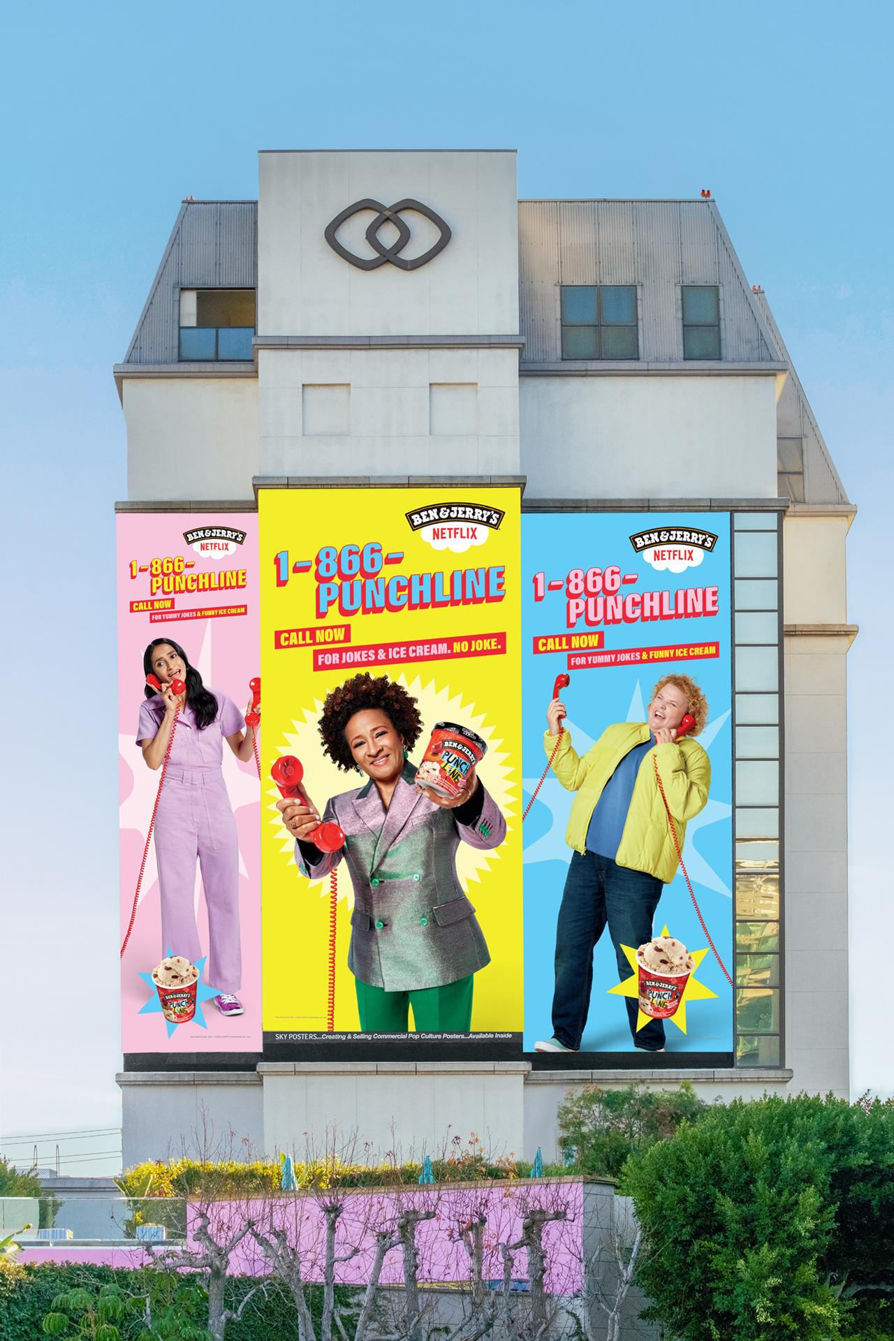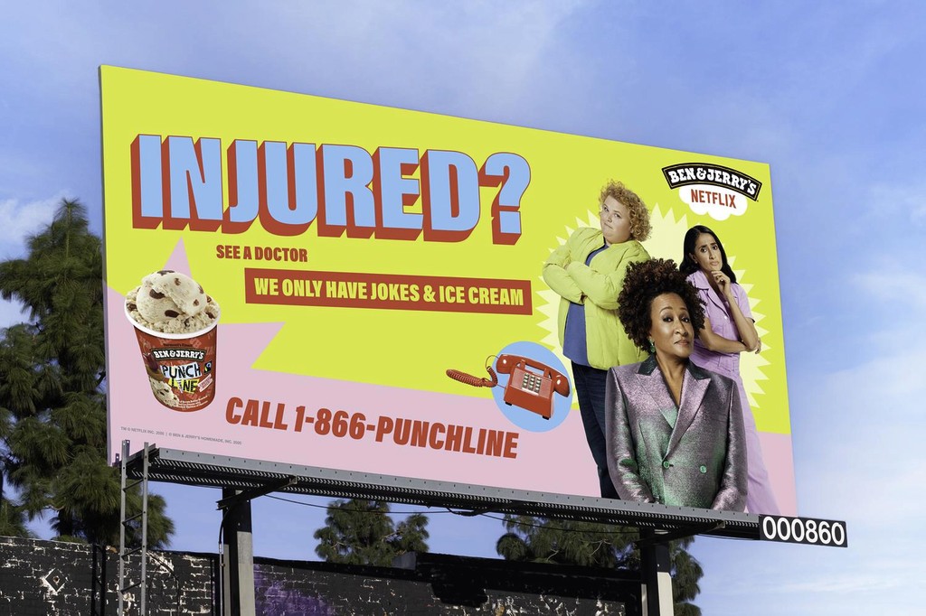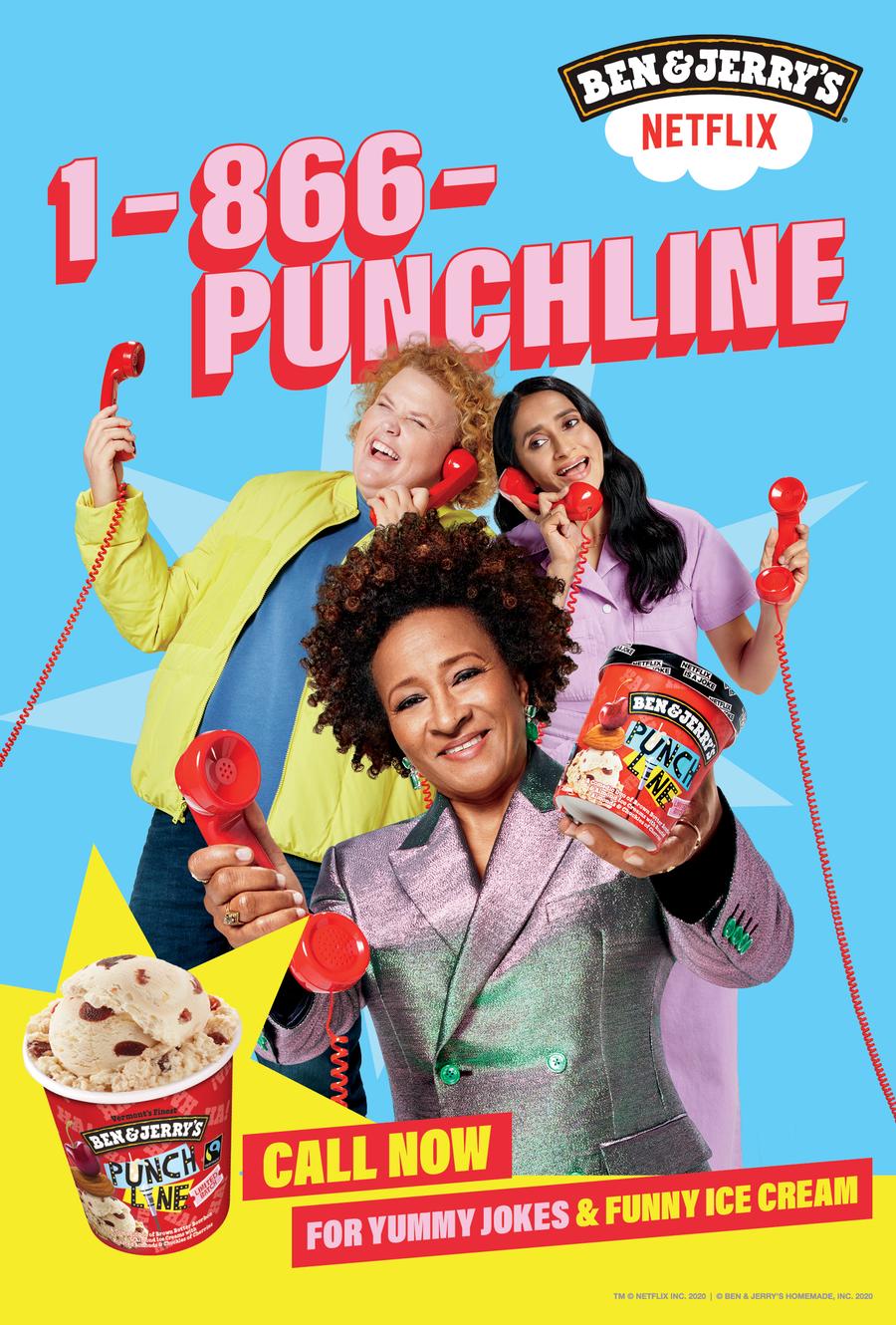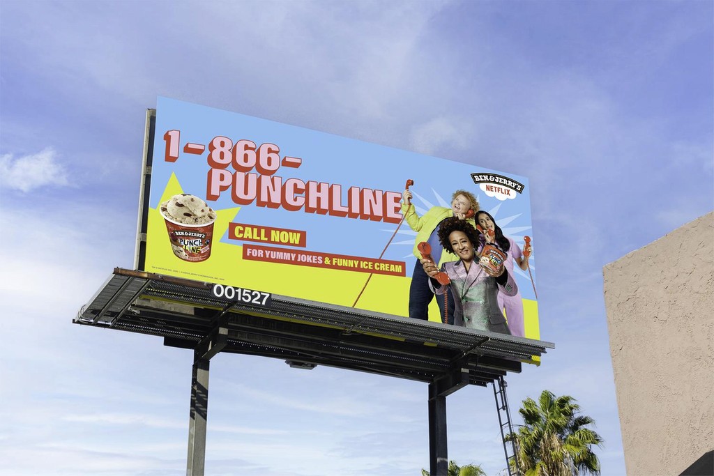 Netflix and Ben & Jerry’s teamed up to launch their new ice cream flavor with a real-life hotline full of jokes...and ice cream. Brought to life by some of your favorite comedians: Wanda Sykes, Fortune Feimster, and Aparna Nancherla. The hotline was promoted with television commercials and OOH nationwide.
