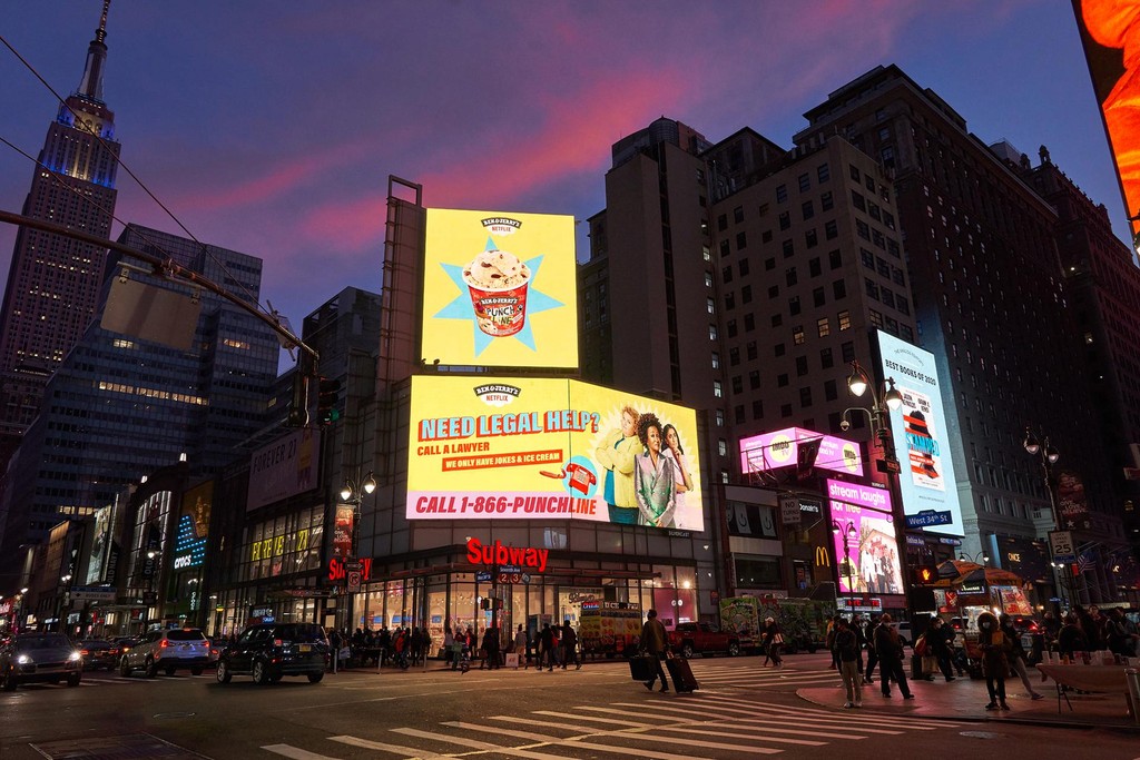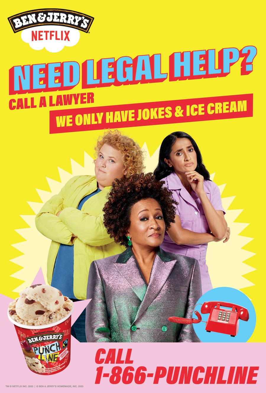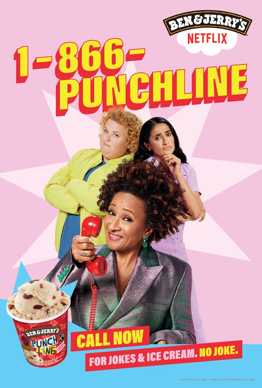 Netflix and Ben & Jerry’s teamed up to launch their new ice cream flavor with a real-life hotline full of jokes...and ice cream. Brought to life by some of your favorite comedians: Wanda Sykes, Fortune Feimster, and Aparna Nancherla. The hotline was promoted with television commercials and OOH nationwide.